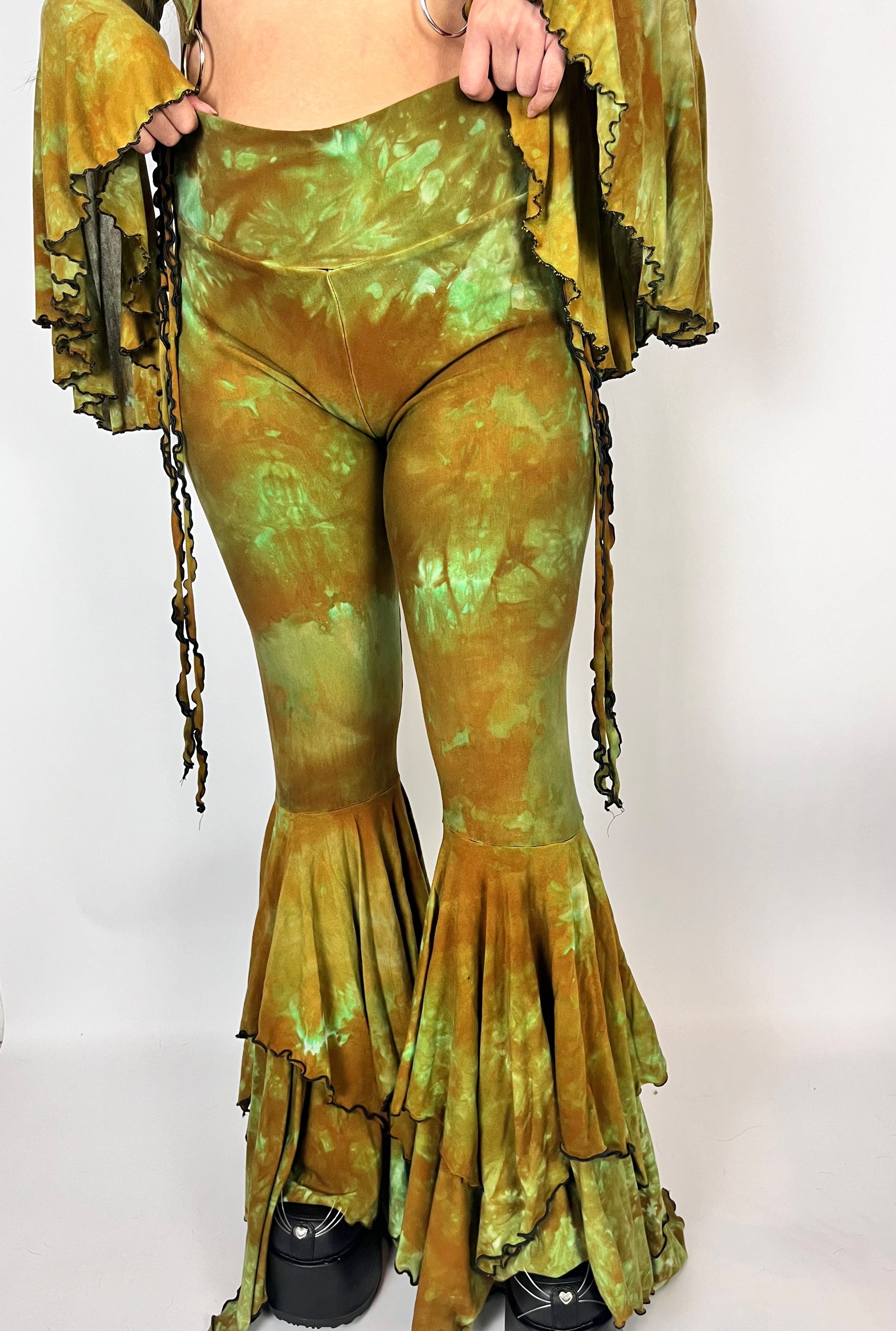 Made from bamboo French terry with buttery soft bamboo jersey bells lined with a lettuce trim. Cinch waistband with lettuce trim stringsĀ